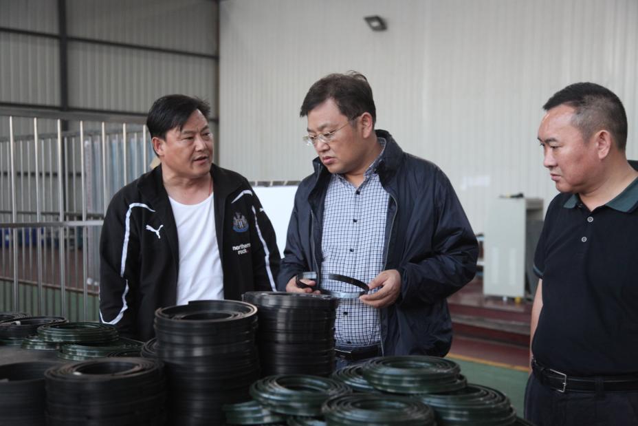 20131006下午,新宏昌重工集團蔣總一行領導在湖北佳恒科技有限公司董事長金波、總經理楊永明、副總經理易明有、明廷海的陪同下深入佳恒公司進行調研考察,蔣總對佳恒公司全新的裝備、先進的生產工藝、嚴格的過程控制給予了高度評價。