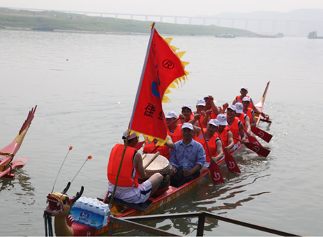 6月22日,中國·鄖縣第四屆調水源頭龍舟節在鄖陽漢江大橋南岸橋頭隆重開幕。我公司組建的龍舟隊在隊員們半個月的艱苦訓練下,順利通過初賽并進入決賽。決賽當天我公司龍舟隊在江上擂鼓運漿,奮力飛馳,激起白浪翻騰,聚集于江岸的萬千觀眾激起一陣又一陣的助威加油聲浪,經過數輪激烈角逐我公司龍舟隊在18支參賽龍舟隊中脫穎而出,最終獲“道德風尚”榮譽稱號。