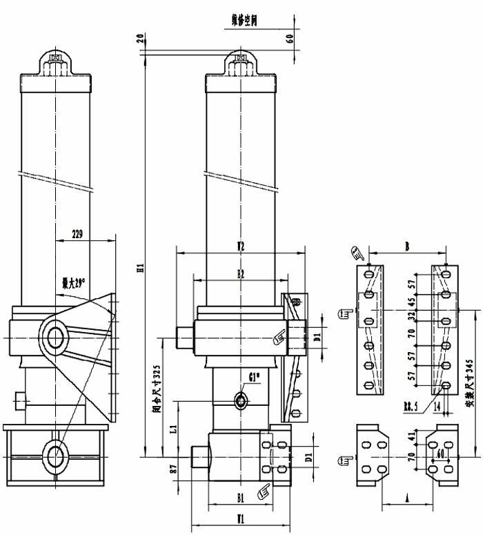 H1為液壓缸封閉尺寸,對照上表具體型號。